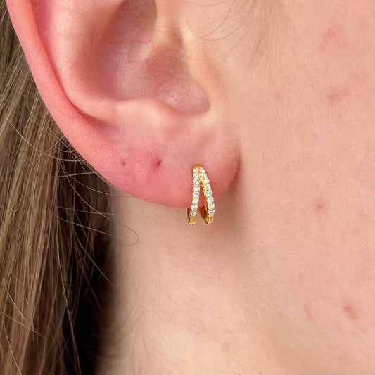 Gold Huggie Pave Hoops