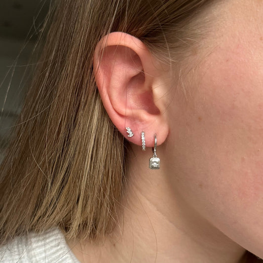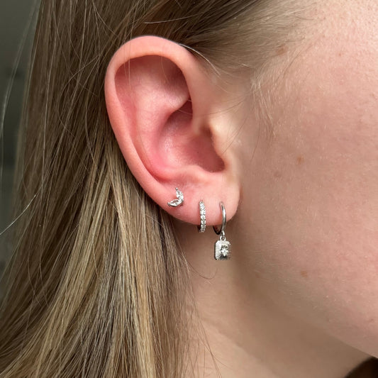 Silver Huggie Pave Hoops
